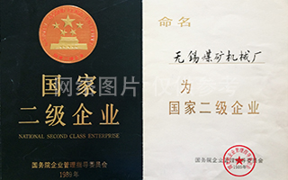 1989年命名無錫煤礦機(jī)械廠為國家二級企業(yè)