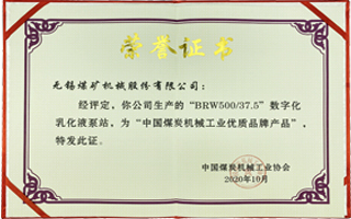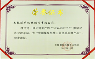 中國煤炭機(jī)械工業(yè)優(yōu)質(zhì)品牌產(chǎn)品