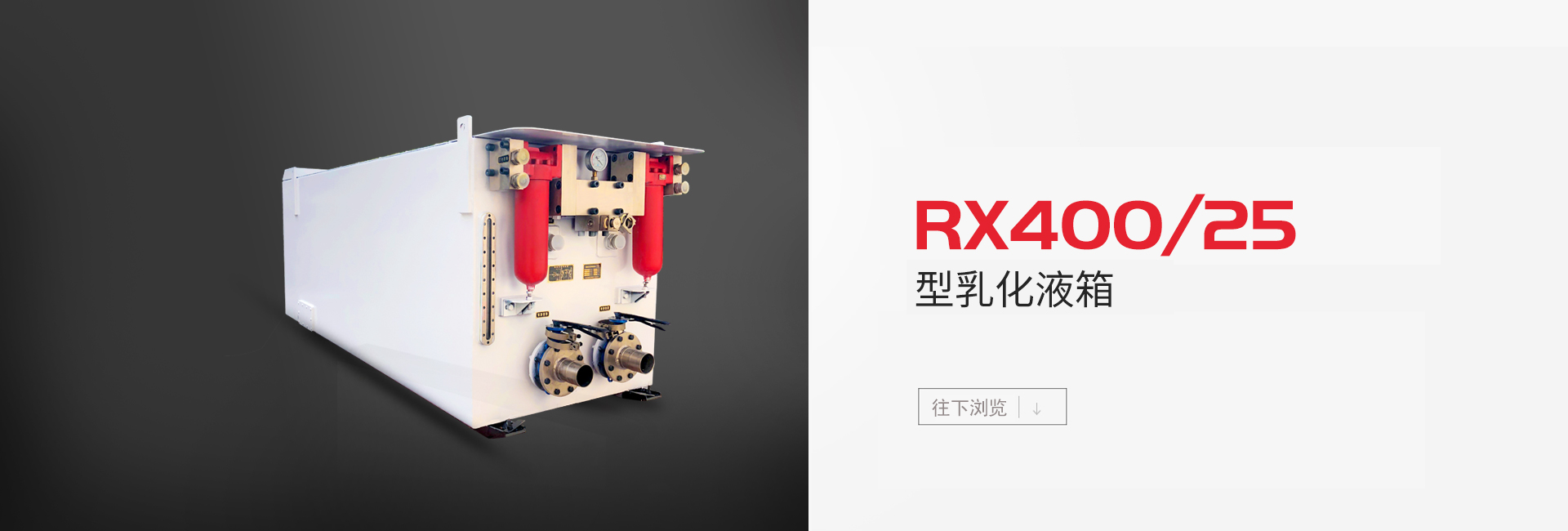 RX400/25型乳化液箱與BRW315/31.5型五柱塞泵及BRW400/31.5Ⅱ型五柱塞泵配套組成乳化液泵站,主要為中、厚煤層綜合機械化采煤液壓支架提供動力源,也可用于地面其它液壓設備。該泵一般由兩泵一箱組成泵站。