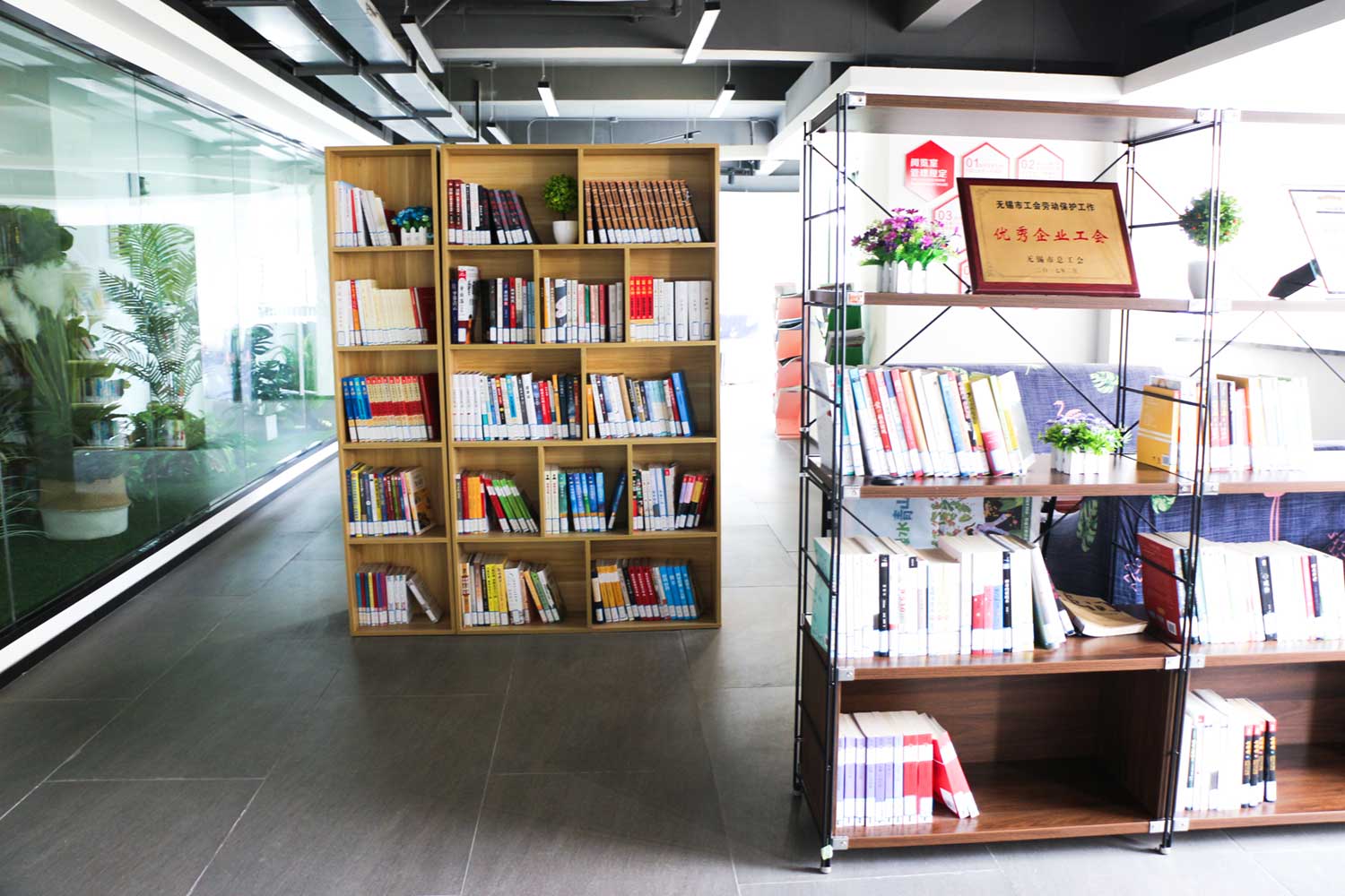 “天上書閣”內還裝點了花卉盆栽,營造了安靜、整潔、美觀、舒適的讀書環境。書屋中的圖書涵蓋黨政歷史、人物傳記、世界文學名著、中國文學名著、法律、社科文學、現代文學、國家地理等,為廣大職工追求新知識、學習新本領的需求和愿望,每年上新圖書100余冊,并在公司內網不定期公布“新書看一看”,為職工網上快捷查閱和學習交流提供了便利條件。