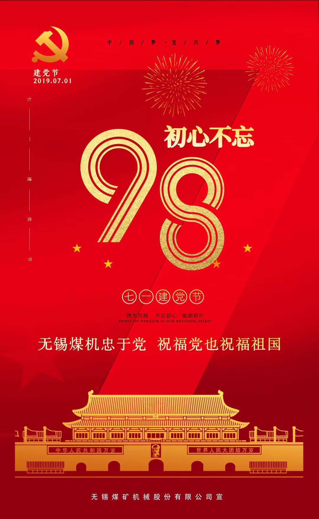 無錫煤礦機械股份有限公司熱烈祝賀中國共產黨建黨98周年!