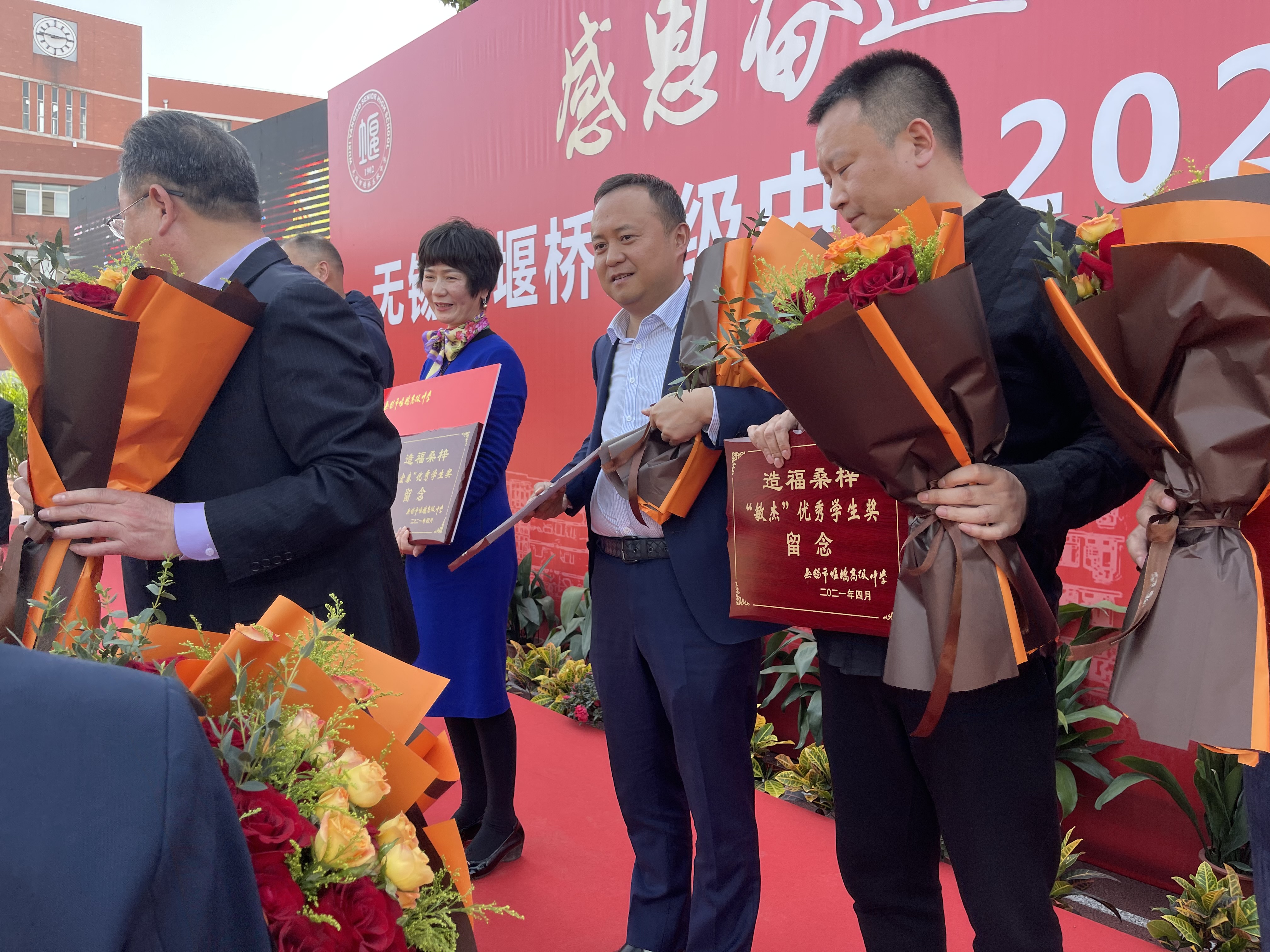 無錫市堰橋高級中學副校長陳登峰先生宣布表彰會開始,胡建秋校長致辭,并向企業(yè)家頒發(fā)獎勵基金捐贈儀式,留念牌、基金牌、鮮花。